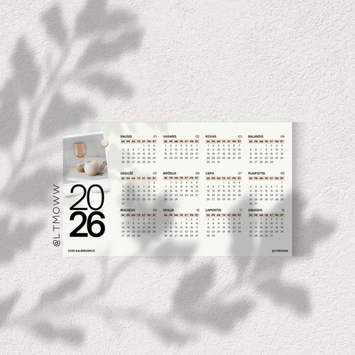 - Personalizuoti 2026 m. kalendoriai su jūsų nuotraukomis.